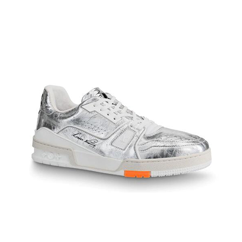 메탈릭 실버 색상의 가죽 으로 제작된 LV 트레이너
