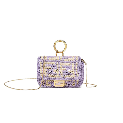 플랫 포켓 안감.우븐 라피아 소재. FF 모티프 장식.
