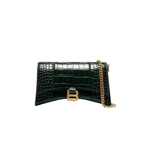 [스페셜오더]BALENCIAGA-656050 발렌시아가 다크 그린 크로커다일 아워글래스 체인 월렛